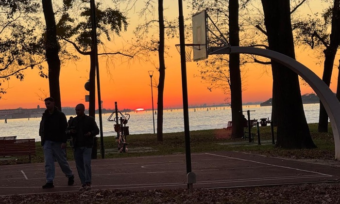 Non dovevo parlare di folber e invece. Succede. E ora andrei pure avanti a scrivere per tutta la notte. Di tutto e di niente. Scegliendo l’argomento che per primo mi frulla nella zucca. Libero come il sole che si spegne nella laguna di Venezia dietro al campetto di pallacanestro di Sant’Elena che non ha eguali al mondo (vedi foto, ndr). Magari anche chiedendovi se conoscete per caso Roberto Chinzari? Sì,è un giornalista del tiggì uno o del due, è lo stesso: fanno parte entrambi del regime in Rai. E s’occupa 24 ore su 24 al giorno del nostro primo ministro del quale credo sia innamorato cotto. Di fatto appena vedo Chinzari, mi urta. Come il cerchietto di Dazn che gira sempre a vuoto nello schermo nero. E cambio subito canale. Come anche mi succede ogni volta con Antonella Clerici e Mara Venier, Al Bano o Laura Pausini, Mario Sechi e Maurizio Belpietro, Malgioglio o Cacciari. E per favore non chiedetemi il motivo.